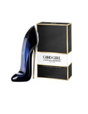 بطری جالب این عطر به شکل یک کفش پاشنه بلند می باشد. پاشنه کفش به رنگ طلایی است و خود کفش به رنگ سرمه ای تیره . عطر گود گرل در حجم 50 و 80 میل تولید شده است.